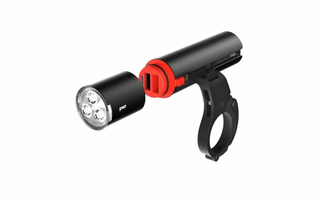 Appuyez sur le bouton rouge pour libérer la tête lumineuse et utilisez la banque PWR pour charger votre téléphone, GoPro, ordinateur de vélo ou autre appareil. Chargez votre PWR Road à l’aide du câble micro USB inclus.