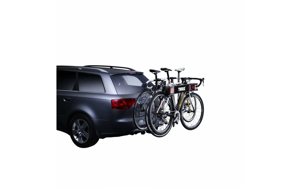 - Montage de l’adaptateur de plaque de signalisation électrique Thule 9761 sur les porte-vélos Thule HangOn 972/974 et Thule Xpress 970. Fixation à l’aide de sangles sur tous les autres porte-vélos.