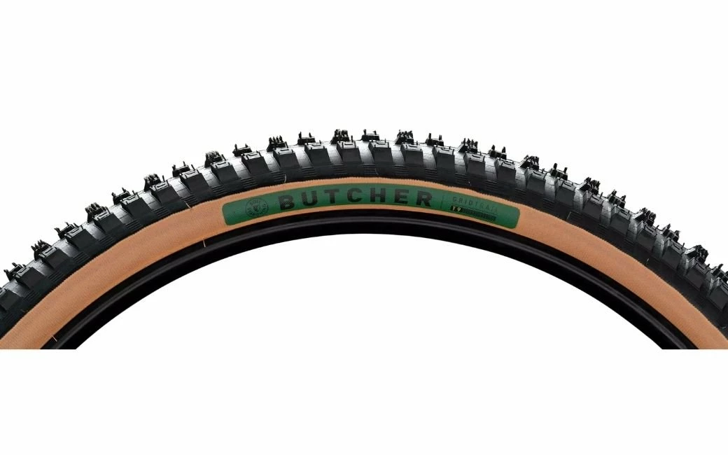 Le Butcher est synonyme d’accroche et de polyvalence et ce sur tous les types de terrains grâce à ses crampons hauts sur les côtés et sur la bande de roulement ainsi qu’à son profil rond. Plus agressif que le Purgatory, il bénéficie de crampons latéraux plus larges et de bords mordants placés vers l’intérieur supportant mieux la charge dans les virages serrés tout en facilitant et en adoucissant la transition vers les crampons centraux lorsque vous penchez le vélo. Il se monte aussi bien à l’avant qu’à l’arrière et apporte une accroche, un confort et une maniabilité à toute épreuve, sur tous les terrains. La carcasse GRID TRAIL bénéficie d’une protection anticrevaison et déchirure allant de part en part des tringles du pneu. En effet, elle bénéficie des mêmes renforts latéraux que la carcasse GRID avec en plus une protection sous la bande de roulement pour davantage de stabilité et d’assise lorsque le pneu est en pleine charge dans les virages assurant en prime un bouclier protégeant efficacement l’intégralité du pneu. Enfin il utilise notre composant de gomme T9 offrant un rebond plus lent pour encore plus d’accroche. Une fois que vous aurez essayé ce nouveau Butcher, vous ne voudrez rien d’autre en descente.
