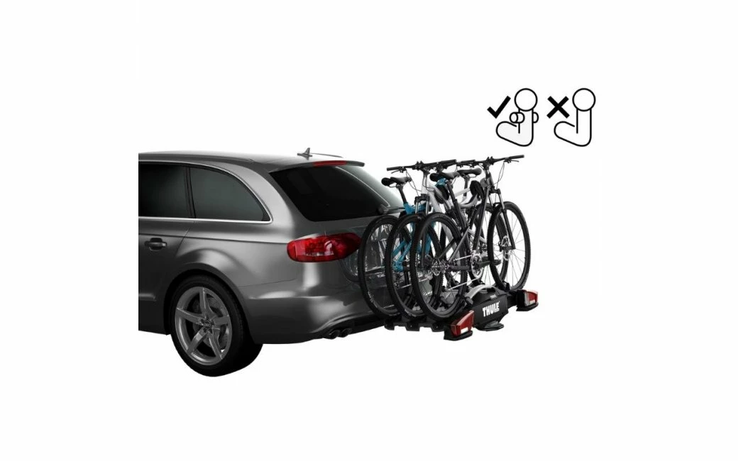 Thule VeloCompact F est un porte-vélos compact et léger pour une utilisation au quotidien, qui permet de transporter jusqu’à 4 vélos. Il est le choix idéal pour une large gamme de vélos, dont les vélos de route, les vélos électriques ou les VTT. Même quand les vélos sont fixés, vous continuez d’accéder au coffre. De plus, avec l’adaptateur 4ème vélo Thule VeloCompact (vendu à part), il peut être agrandi pour transporter 4 vélos. Ce porte-vélos de tous les jours compact se plie aussi pour pouvoir être rangé dans le coffre de la plupart des voitures.