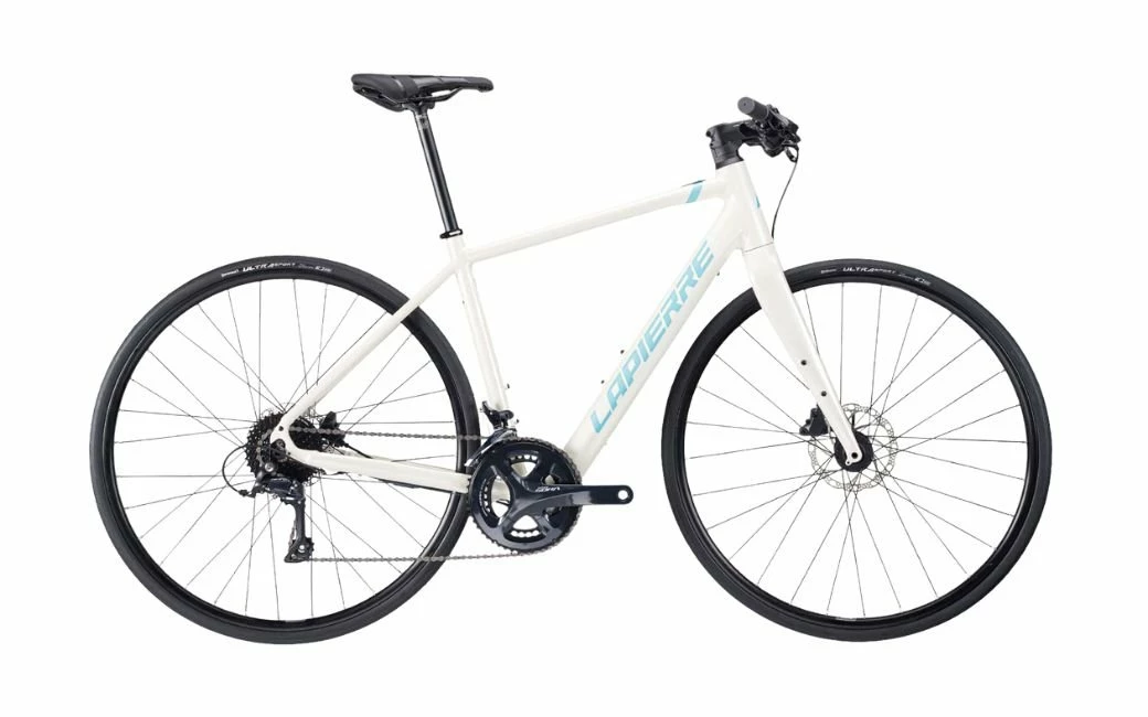 Le Lapierre E-Sensium 2.0 avec son cadre en aluminium, une transmission Shimano 9 Vitesses, ses roues de taille 700, et ses freins Shimano hydrauliques